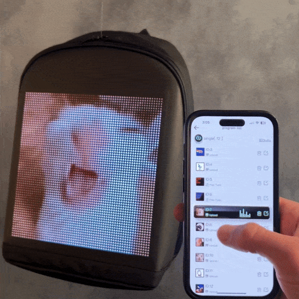 4. Display Your Design: Once you're happy with your creation, upload it to the backpack through the app. Your custom design will immediately start displaying on the backpack's LED panel.